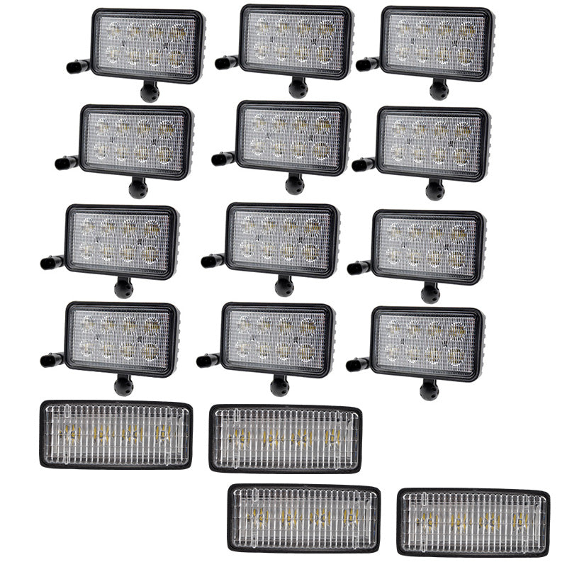 · Includes 16 lights(4upper cab and 12 cab,fender,handrail,or hood work lights), connectors, mounting brackets, adapters,and hardware